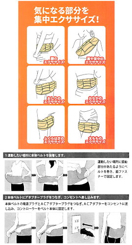 電 源 AC100-240V 50-60Hz 消費電力 24W サイズ コントローラー:15.5 × 4 × 2 cm ベルト:130 × 14 × 5 cm ベルトの調整範囲 60 〜 120cm (ウエストサイズ約120cmまで使用可能) ACアダプターコード 約 145cm 重 さ 約 700グラム 材 質 PU、ABS他 生産国 中国 保証期間 お買い上げ日より1年間 ご注意 閲覧時のPCモニターやスマートフォン画面で表現される色味と実物の色味では異なる場合もございます。